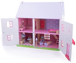 Куклените къщи винаги са били сред любимите момичешки играчки. А комплекта от "Bigjigs Toys" ще зарадва всяка малка бъдеща домакиня! Той е изработен от дърво, боядисано с безвредни бои на водна основа и съдържа всичко необходимо за обзавеждането, като мебели и аксесоари. За по-интересна игра, къщата за кукли е реалистично изработена и е на 2 етажа, а вратите и прозорците могат да се отварят и затварят. На всеки детайл е обърнато специално внимание и детето ще се забавлява с часове, докато развива фината си моторика, координация и усещане за цветове. Къщата е с размери 59 / 60 / 36 cm. Внимание: Къщата ... |