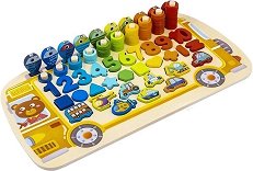Децата ще се забавляват с училищния автобус от Iso Trade. Той е изработен от дърво и се състои от рибки, превозни средства, числа, фигурки и низанки. Малчуганите могат да играят на риболов или да научат числата от 1 до 10. Те ще разберат как изглеждат геометричните фигури и ще играят с хеликоптер, кораб и кола. Подрастващите ще развият своето въображение, сръчност, фина моторика и креативност. Размерите на училищния автобус са 41 / 22.5 / 6 cm. ... |