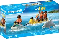 Играчката е част от серията My Life, където може да намерите още интересни комплекти. ... Готови ли сте за морско приключение? С комплекта от Playmobil децата могат да се впуснат във вълнуващо пътешествие по вълните. Джетът тегли банановата лодка с висока скорост, а летовниците се държат здраво за дръжките, докато се наслаждават на морския бриз и веселите пръски вода. Смехът и адреналинът са гарантирани, а към забавлението се присъединява и любопитен делфин, който плува до тях и прави морската разходка още по-вълнуваща. Комплектът пресъздава динамична сцена от летните ваканции край морето. Джетът има място за една ... |