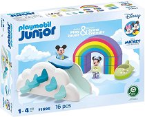 Играчката е част от серията Junior, където може да намерите още интересни комплекти. ... Конструкторът от Playmobil е цветен и многофункционален комплект, който подпомага развитието на малките деца в различни направления. Множеството възможни комбинации между отделните елементи стимулират креативността и въображението, а разнообразните игрови функции насърчават фината моторика и когнитивните умения. Дъгата може да се използва като люлка или дрънкалка, както и да се комбинира със строителните блокчета в цветовете на дъгата за създаване на цветна арка. Тя може да се постави и върху облачната къща за удобно съхранение. ... |