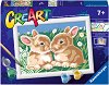 Нарисувай картина Зайчета - Ravensburger Творчески комплект с акрилни бои от серията CreArt |