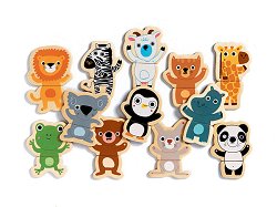 Весели животни - Дванадесет дървени фигури с магнит - играчка