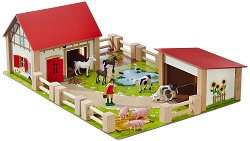 Ферма с животни - Дървена играчка с аксесоари - играчка