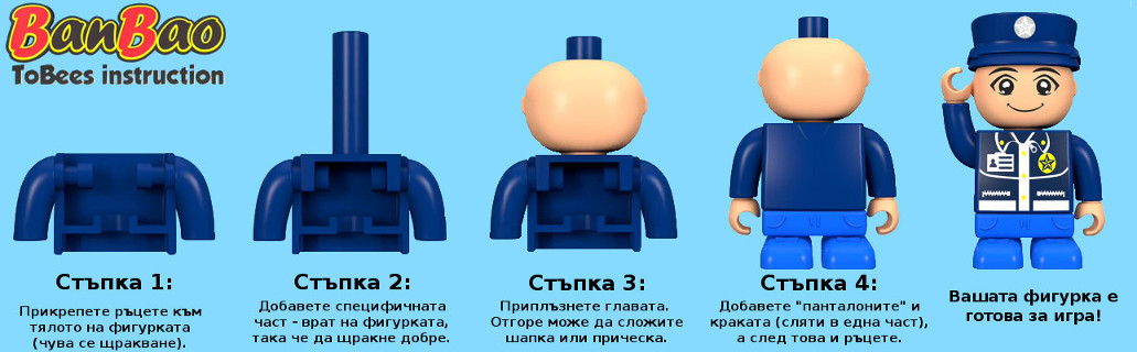 Моделът, по който са направени тухличките и мини фигурките, е взаимстван от големите марки конструктори, и това е причината те да си съвпадат с почти всички тях. Така, например, всички деца, които притежават комплекти от лидерът в сглобяемите играчки "Lego", ще могат с удоволствие да ги допълнят и със страхотните идеи, поднесени от сетовете на "BanBao"!