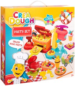Обичаш да прекарваш време с приятелите си? Но също така обичаш да готвиш? Защо не ги поканиш на парти и не им приготвиш нещо вкусно? С комплекта от серията "Crea Dough" на "Five Stars" ще можеш да ги изненадаш със страхотни специалитети - пица, паста и сладолед. Използвай включените в комплекта прибори, формички и моделин, за да ги приготвиш. На помощ ще имаш шприц за спагети, пещ за "изпичане" на пицата и машина за сладолед. Това ще бъде най-страхотното парти!