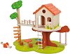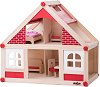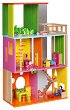 В комплекта детето ще намери най-различни залепващи се стикери под формата на обзавеждане - столчета, скрин, картини, нощна лампа, снимки, библиотека с книги, огледало, саксии и други. С тях то може да декорира къщата както отвътре, така и отвън. Освен стикери за обзавеждането на стаите в къщата има и такива, с които детето да създаде красива градина - дръвче с ябълки, храстче, пейка, цветя, люлка и други. Също така то ще има възможност и само да направи допълнителни аксесоари. За целта трябва да се постарае да изреже елементите за доукрасяване от кутията на къщата.