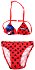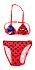 Детският бански е изработен от 88% полиестер и 12% еластан. Горнището е с регулируема връзка на врата и се хваща не гърба с пластмасова закопчалка.