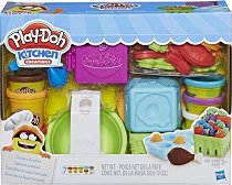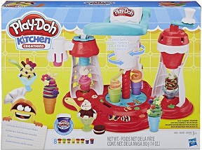Време е за сладолед. А кой не обича вкусното лакомство? От "Play-Doh" предлагат на малчуганите комплект включващ 8 кофички с цветен моделин, машина за сладолед с 3 сектора - два за шприцоване на сладолед и един за декорация, и аксесоари. С всичко това малките сладкари ще се забавляват докато пълнят кофичките и купичките с "вкусното" лакомство.