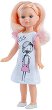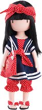 Куклата е с височина 32 cm и е изработена от мека пластмаса - винил, а използваните бои са безвредни. Може да стои изправена самостоятелно или седнала, главата ѝ се върти наляво и надясно, ръцете и краката ѝ са подвижни, а косата ѝ е като истинска. Облечена е с бяла рокля, чорапогащник на черни и кремави райета, кремави обувки и чанта с нарисувано зайче, а на главата си има златиста панделка.