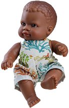 Куклата от испанския производител "Paola Reina" е изработена от материали с най-високо качество, и е сглобена и декорирана на ръка. Изработена е от мека пластмаса - винил, без съдържание на фталати, а фините детайли правят куклата да прилича на истинско бебе. Обута е с плетени гащи и бели къси чорапи, на главата си има плетена шапка и е в комплект с мека постелка и спортна торба за аксесоари.