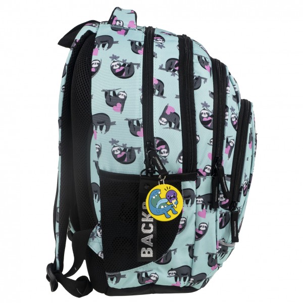 Ученическата раница "A 21" от "Derform" е със сладък дизайн на любвеобвилни ленивци, подходящ за всяка тинейджърка. Тя има твърд, ергономично оформен и подплатен с мрежеста материя гръб. Презрамките ѝ също са подплатени и могат да бъдат регулирани според височината на притежателя. Раницата разполага с едно основно и едно допълнително отделение, които са подходящи за учебници, помагала, тетрадки и несесер. Основното отделение е снабдено с 2 различни по големина текстилни прегради за лаптоп и таблет. Предните 2 джоба на раницата са с различна големина. По-големият джоб е снабден с малко текстилно джобче с цип. По-малкият джоб има органайзер за химикалка и маркер, 2 различни по големина отворени джобчета и 1 по-малко от мрежеста материя, което се затваря с цип. До тях ще намерите ключодържател за ключове, който може да се маха по желание. От двете си страни, раницата има мрежести джобове за бутилка за вода или сгъваем чадър. В допълнение, тя има 2 къси дръжки за носене в ръка и закачане на раницата. Светлоотразителните ѝ елементи ще осигурят безопасност на детето, давайки знак на всеки участник в движението.