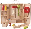 Креативният комплект съдържа куфарче, винтоверт с 2 приставки, отвертка, гаечен ключ и над 200 елемента за сглобяване. От едната страна куфарчето е изработено с улейчета, в които малчуганът ще може да поставя малките винтчета и гайки, с които да свърже пластмасовите елементи. Освен за редене, куфарчето служи и за съхранение на елементите.