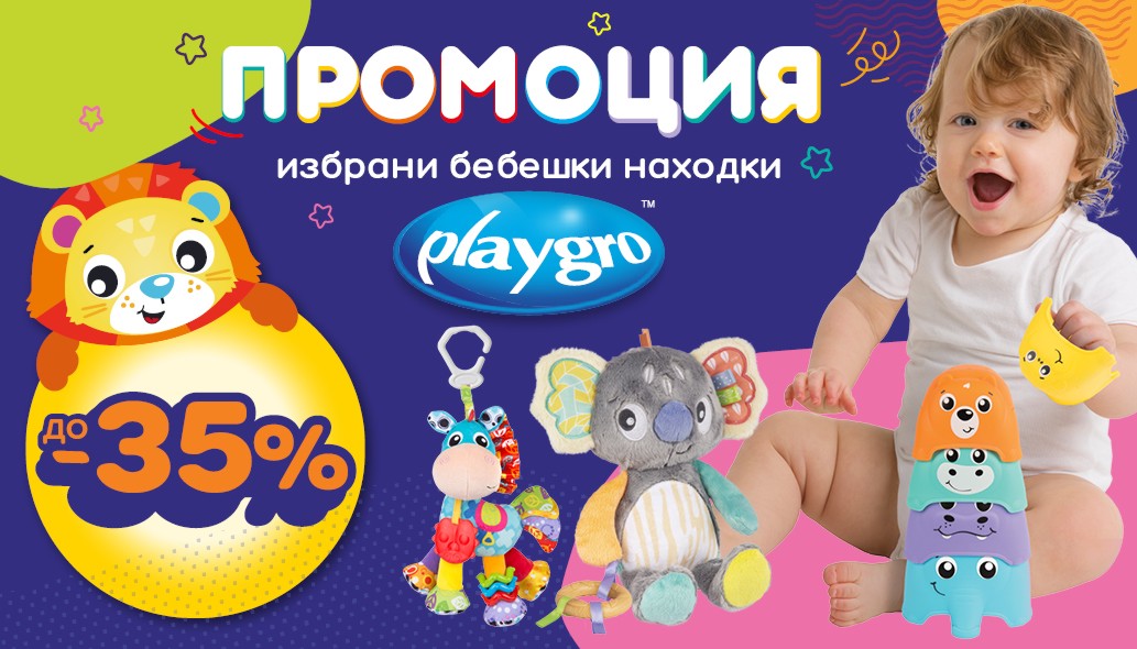 Сега, избрани продукти Playgro се предлагат със специално намаление до 35%. Разгледай и избери най-подходящия подарък за своето дете.