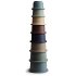 Комплектът от "mushie" ще бъде чудесен подарък, с който детето ще се запознае с различните цветове и ще развие своите сетива. Той съдържа 8 цветни чаши, като всяка една е с различен размер и цвят. Чашките се поставят една върху друга, за да образуват кула, или може да се използват за игра поотделно. Изработени са от полипропилен, без съдържание на Бисфенол, Фталати и PVC. Играта с комплекта развива координацията и моторните умения на детето.