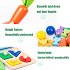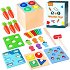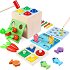 Дървената кутия с активни занимания включва 5 сменяеми капака, всеки от които предлага различна игра - риболов, игра с чукче, събиране на моркови, хващане на червейчета и подреждане на геометрични фигури. Към комплекта са включени магнитна пръчица, чукче, фигурки на морковчета, фигурки на рибки, фигурки на червейчета, топчета и геометрични форми. Всички компоненти могат да се съхраняват в кутията. Играчката е подходяща за деца над 1 година.