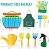 С детския комплект Малкият градинар ще можеш да помагаш на мама и баба в градината с лекота! Той се състои от всичко необходимо за един малък градинар, а именно чанта, чифт ръкавици, 2 лопатки, гребло, пръскалка, лейка и престилка. Чантата разполага с 1 основно отделение и множество джобчета за съхранение на градинските инструменти. Ръкавиците и престилката са изработени от текстил, лейката и пръскалките са пластмасови, а инструментите са изработени от метал с дървени дръжки, боядисани с безвредни бои на водна основа.