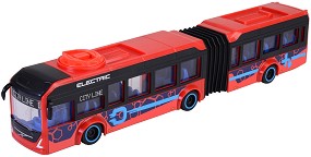 Детският автобус от Dickie ще зарадва малчуганите, които обичат да пътуват. Той е подходящ за деца над 3-годишна възраст. Изработен е от пластмаса и е подходящ за активна игра. На детайлите му е обърнато специално внимание - вратите му се отварят посредством завъртане на ролки, колелцата се въртят, което позволява движение напред и назад, а предните гуми могат да завиват наляво и надясно, което се маневрира от покрива. При всеки завой, автобусът разтяга акордеона, разделящ превозното средство на 2.