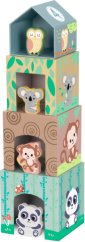 Комплектът от "Woodyland" се състои от 5 кубчета с различна големина, които могат да се приберат едно в друго. На страните си имат нарисувани различни домашни и диви животни, а на една от тях има изрязана форма, на която съответства фигура за сортиране. Всяка от тях е с различна големина и цвят. Така малчуганите ще се забавляват докато се учат да разпознават животните, цветовете и формите, и ще упражняват координацията си между очи и ръце, фината си моторика и логическото си мислене. Комплектът се състои от 5 кубчета с различна големина, изработени да могат да се прибират едно в друго. Така след игра лесно ... |