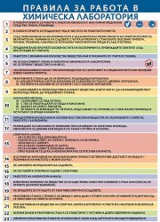 Учебното табло съдържа 23 основни правила за безопасна и правилна работа в химическа лаборатория. Подходящо е за използване в учебни кабинети и лаборатории по химия. Ламинирано е и е снабдено със стабилни лайсни за по-лесно и сигурно поставяне. Таблото е с размери 70 х 100 cm. ... |