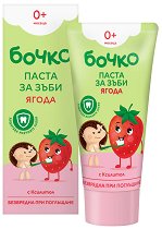 От Бочко създават паста за зъби, специално разработена за децата над 3 години. Формулата ѝ е с подбрани съставки, които са нежни към детските зъбки и им осигуряват защита. В състава е вложен калций, отговорен за заздравяването на емайла. Благодарение на него, се повишава реминерализацията на млечните зъбки. Във формулата е добавен натриев флуорид, който предотвратява образуването на кариеси. Пастата е с приятен аромат на ягода, спомагащ за лесно приучване на детето към редовно миене на зъбките. ...