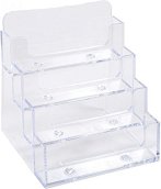 Практичната поставка на "Kejea" може да побере рекламен материал, поставен във вертикална позиция, както и друга важна информация. Също има място за визитки и пишещо средство. Намира приложение предимно в офиси, фоайета и рецепции в ресторанти, хотели, болници. Изработена е от прозрачна пластмаса и е с размери 10 x 20 cm. ... |