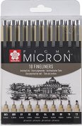 Комплектът от серията Pigma Micron на Sakura е подходящ за писане, рисуване, контури, илюстрация и скициране. Той включва 10 черни тънкописеца, които оставят линии с различни дебелини. Тънкописците работят с постоянно, водоустойчиво, цветоустойчиво и светлоустойчиво мастило. Мастилото тече плавно върху всички видове хартия и картон, съхне бързо, не се размазва и е с неутрално pH. Те имат връх, подсилен с метална рамка - идеален за използване с линийки и шаблони. Финият връх прави тези писалки идеални както за технически, така и за художествени рисунки. ... |