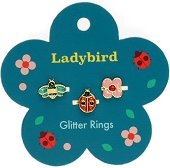 Добавете цвят и настроение към детския стил с очарователния комплект от 3 детски пръстена с мотиви на калинка, пчеличка и цвете от Rex London. Изработени от лека и безопасна пластмаса, пръстените са с блестящ дизайн и леко регулируем размер, което ги прави удобни за повечето детски ръчички. Всеки пръстен е с различна форма на "скъпоценен камък", което ги прави още по-интересни и забавни за носене. Подходящи са за ежедневна игра, партита или като малък подарък, който със сигурност ще донесе усмивки. ...