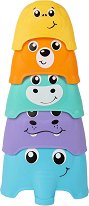 Кулата от купички "Животни" на "Playgro" ще бъде чудесен подарък за вашето дете. Комплектът съдържа 5 броя купички в различен цвят и размер, които детето може да подрежда една върху друга. Играта с комплекта развива моторните умения на бебето, координацията око-ръка и когнитивното мислене, а ярките цветове насърчават визуалното възприятие. Забавният им дизайн с весели муцунки на животни насърчава ролевата игра и въображението. Всяка една от играчките е с размери пригодени за малките ръчички на детето. Размерите на кулата са 15 / 29 / 16 cm. ... |
