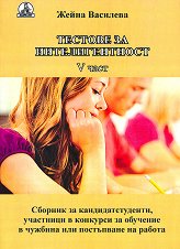 "Сборникът от примерни тестове е съставен по подобие на познатите у нас тестове за постъпване във ВУЗ и за проверка на интелигентност. Независимо от вашето образование и възраст, не се страхувайте да посегнете към задачите от нашите тестове. Те не са съставени с цел да понижат самочувствието ви. Те ще ви помогнат да се подготвите за вашия изпит и за вашите бъдещи срещи с тестова проверка. Оценките на резултатите от работата с теста съществено зависи от възрастта, образованието и подготовката Ви. Можете да се самооцените и да контролирате своето напредване в работата с тест." Жейна Василева Всеки тест се ...