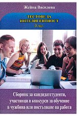Сборник за кандидат-студенти, участници в конкурси за обучение в чужбина или постъпване на работа. ... "Сборникът от примерни тестове по подобие на познатите у нас тестове за постъпване във ВУЗ и за проверка на интелигентността. Ние нямаме претенции, че с решаване на задачите вие сте доказали своята интелигентност, или че ви липсва такава, само защото не сте решили всички задачи. Привърженици сме на схващането, изразено от Айзък Азимов (вицепрезидент на "Менса интернашънъл" - световна организация на хората с висок коефициент на интелигентност) - "Това, което обективно съществува, е "различен& ...