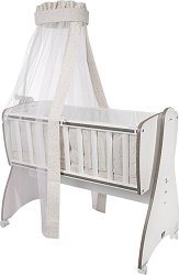 Бебешката люлка LooL предлага удобство не само на мъничето, но и на родителите. Тя е подходяща още от първите дни на малкото човече до около 6-месечна възраст. Дъговидната основа на люлката позволява да люлеете бебето назад-напред, за да го успокоите и приспите. Това движение е проектирано да наподобява усещането за движението в майчината утроба. Страничните стени на LooL са изработени от мрежеста материя, която позволява свободната циркулация на въздуха. Текстилните части могат да се отстраняват за пране. В комплекта е включен матрак, който също може да се пере. Той има памучна калъфка с цип, която може да бъде лесно ... |