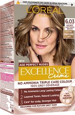 Искате красива и видимо по-здрава коса, с мек естествен цвят? Специалистите на L'Oreal създават безамонячната боя за коса Excellence Creme Age Perfect Nudes – иновативен ритуал за боядисване с тройна грижа, създаден специално за зрялата и посивяла коса. Боята е разработена по иновативна технология на пластовете, която поддържа хармоничен контраст с пигментираната коса и създава естествено изглеждащи светли и тъмни тонове, сякаш косата е на кичури – за мек, равномерен и подмладяващ резултат, който не подчертава израстналите корени. Формулата е нежна към скалпа* и осигурява до 100% покритие на белите коси**. ... |