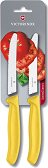 Ножовете са част от серията Swiss Classic, където ще откриете още кухненски принадлежности. ... Сетът на Victorinox съдържа 2 кухненски ножа с дължина 110 mm и назъбено острие, подходящи за рязане на плодове, зеленчуци, колбаси, както и за мазане. Изработени са от неръждаема стомана. ...