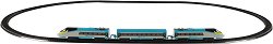 С влаковата композиция Mini Pendolino от Rappa децата могат сами да изградят свое железопътно приключение. Сглобете релсите, поставете локомотива, свържете вагоните и потеглете към избраната дестинажия. Комплектът включва преден и заден локомотив, 1 вагон, 8 извити и 4 прави релси. Може да се изгради трасе с размер до 96 x 58 cm, като разстоянието между релсите е 1.4 cm. Локомотивът е с дължина 14 cm, а вагонът – 13.5 cm. Локомотивът работи с 1 батерия AA, която може да закупите отделно и се управлява чрез превключвател ON/OFF, разположен на покрива. Моделът може да се комбинира с влаковете RegioJet и Mini на ... |