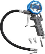 Пистолетът на Fervi е предназначен за напомпване на гуми на автомобили, велосипеди, мотопеди, лодки и други превозни средства. Разполага с гъвкав маркуч с дължина 35 cm и дигитален манометър с LCD дисплей с фоново осветление. Има опция за избор на мерната единица, а за по-голямо удобство е снабден с регулатор на въздушния поток. Пистолетът е с работно налягане до 8 bar (110 PSI), има присъединителен размер 1/4" и се захранва с 2 батерии 1.5 V AAA, които се закупуват отделно. Предлага се в комплект с 3 накрайника за свързване към шланга на компресора. ...