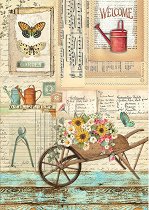 Декоративната хартия с мотиви от серията Garden на Stamperia може да превърне старите вещи в приказна украса за дома или в невероятен подарък за близък човек. Оризовата хартия може да се използва изцяло или да се изрежат определени елементи от нея, които най-добре пасват на вашия проект. Работата с този продукт е по-лесна и удобна, отколкото с илюстрации от списания или принтирани цветни изображения. Предимствата на този вид хартия се крият в нейната здравина и гъвкавост. Тя може да се положи върху различни предмети изработени от дърво, пластмаса, метал, картон или стъкло, без значение дали повърхността им е гладка ... |