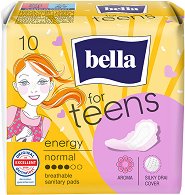 Специално за тийнейджърки Bella създават линията дамски превръзки Bella for Teens, които са с младежка визия и интересен дизайн. Превръзките Ultra Energy са съобразени с изискванията на младите дами. Те са ултратънки - само 2 mm и незабележими дори при стегнати дрехи. Попивателната им способност е 4 от 6 капки, което ги прави подходящи за средна до по-силна менструация. Те имат специално покритие Silky Drai, което представлява мека копринена мрежичка, пропускаща влагата към вътрешността, за да останат сухи на повърхността. Специаленият Magic Gel във вътрешността, задържа течността и я превръща в гел. Превръзките имат ... |