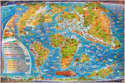 Детската картинна карта на древния свят е известна в педагогическата практика като отворена книга за интерактивно обучение. Тя е изградена на енциклопедичен принцип и е носител на световна награда за най-добра стенна карта с образователен принос. Предимствата на стенната карта на древния свят са: богатство на информацията и възрастова приложимост във вертикален план на развитие на детето; постоянен подсъзнателен мотивационен фон за колективна и индивидуална учебна работа; провокиране на интелектуален стремеж към откривателска дейност у детето; формиране на качества за: наблюдателност, системност в групиране и ... |