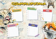 Напиши часовете от програмата за училище и бъди винаги подготвен със седмичните програми на Перфекта! Програмата допълва перфектно колекцията с ученически тетрадки Диви животни. Открий всички програми за училище на издателство Перфекта. ... |
