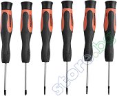 Фините отвертки на Premium са подходящи при ремонт на часовници, телефони, компютърни части и други. Отвертките разполагат с двукомпонентни дръжки. Комплектът съдържа 3 прави отвертки тип SB и 3 кръстати отвертки тип PH. Отвертките се предлагат в кутия за съхранение. Вид и работна дължина на отвертките: SB2 x 50 mm SB2.5 x 50 mm SB3 x 50 mm PH00 x 50 mm PH0 x 50 mm PH1 x 50 mm ... |
