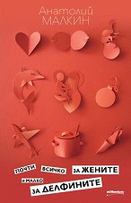 Анатолий Малкин (1946 г.) е сред най-известните и обичани руски телевизионни режисьори. Създател е на десетки популярни програми като "Взгляд", "Времечко", "12 етаж", преподавател в Руската телевизионна академия и в Института по кинематография, лауреат на редица държавни отличия за принос в авторското кино и телевизия. Баща на модерната телевизионна журналистика и откривател на почти всички нови лица в професията. "Почти всичко за жените и малко за делфините" е книга за любовта. Което значи - за хората. Но не само за младите хора, защото Малкин смята, че силната любов се влияе не от ... |