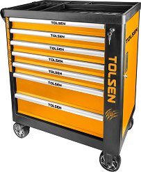 Количката на Tolsen предлага надеждно и сигурно съхранение на инструменти в професионална среда като работилници, сервизи и индустриални помещения. Има конструкция, проектирана с акцент върху сигурността и удобството при работа. Всяко чекмедже се заключва самостоятелно, като е възможно да бъде отворено само едно чекмедже едновременно, което предотвратява преобръщане. Страничната врата с ключ осигурява допълнително място за съхранение на инструменти. Моделът е оборудван с 2 фиксирани и 2 завиващи се колела със спирачка за лесно и стабилно придвижване. Характеристики: самозаключваща се система - само едно отворено ... |
