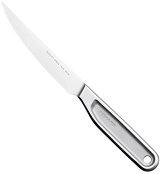 Ножът е част от серията All Steel, където ще откриете още кухненски принадлежности. ... Ножът на Fiskars е подходящ за разрязване на деликатни плодове и зеленчуци. Снабден е с назъбено острие и остър връх, благодарение на които не се разкъсва обелката и не се смачква продуктът. Изработен е от високовъглеродна неръждаема японска стомана с твърдост HRC 58, а оптималният баланс между дръжката и острието осигурява удобно рязане. Размери на ножа: дължина на острието - 120 mm дължина на дръжката - 120 mm Важно: Ножът е подходящ за заточване с керамичен търкалящ се камък или точило за ножове Whetstone. ... |