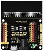 Модулът е по система micro:bit, където ще откриете още интересни продукти. ... Модулът на Keyestudio е пробивна платка, която ще ви помогне да свържете micro:bit със сензори. Той дава възможност да свържете micro:bit както през микро USB порт, така и през DC жак. Има възможност за избор на захранващо напрежение 3.3V - 5 V или 5 V чрез джъмпер капачка V1 и V2. Модулът разделя всички PIO портове на micro:bit в 3PIN интерфейса (GND, VCC, сигнал). Освен това разширява някои често използвани серийни комуникационни интерфейса в щифтове, като I2C и SPI. Така че този модул ще позволи комуникация между контролната платка micro: ...