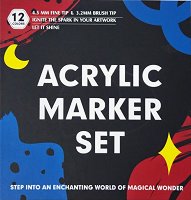Акрилните маркери са подходящи за рисуване, илюстрации, калиграфия и различни творчески проекти. Всеки маркер разполага с два върха - фин 4.5 mm за прецизни линии и четков 3.2 mm за по-широки щрихи и плавни преливки. Акрилното мастило осигурява наситени цветове, равномерно покритие и отлично прилепване към различни повърхности като хартия, картон, дърво, плат, стъкло и пластмаса. Маркерите са лесни за използване и позволяват комбиниране на техники за създаване на ефектни и детайлни произведения. Подходящи са както за професионални художници, така и за любители, които обичат да експериментират с цвят и форма. ...
