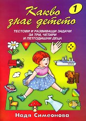 Учебното помагало е одобрено с наредба № 2 / 17.03.2002 г. на Министерството на образованието и науката. ... Тази книга съдържа тестове, развиващи задачи и упражнения за 3-5 годишни деца. Това е възрастта, в която те най-активно опознават света, който го заобикаля и развиват своите способности. Книгата е подходяща както за работа в детската градина, така и за полезни и приятни занимания с родителите. Може да се използва: за изследване на познавателните процеси на децата и проследяване хода на тяхното развитие в тригодишен период; за формиране и развитие на базови личностни структури на децата в предучилищна възраст ... |
