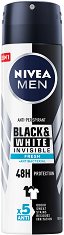 Дезодорантът Black & White на Nivea ще ви осигури свежо и чисто усещане през целия ден. Иновативната формула осигурява 5 в 1 действия - защита от неприятни миризми, изпотяване, петна, следи и дразнене. Тя предотвратява появата на бели петна върху тъмните дрехи и образуването на жълти следи върху бяло облекло. Специална патентована технология осигурява мека текстура и гладко нанасяне. Мъжественият аромат ви съпътства през целия ден, карайки ви да се чувствате уверени. Предимства на дезодоранта Nivea Men Black & White: 48-часа* защита от изпотяване и неприятни миризми не предизвиква дразнене без бели и жълти петна ... |