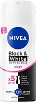 Радвайте се на дълготрайно свежо и чисто усещане с дезодорантът Black & White Clear на Nivea. Иновативната формула осигурява 5 в 1 действия - защита от неприятни миризми, изпотяване, петна, следи и дразнене. Тя предотвратява появата на бели петна върху тъмните дрехи и образуването на жълти следи върху бяло облекло. Специална патентована технология на емулсията осигурява мека текстура и гладко нанасяне, без лепнещо усещане. Предимства на дезодоранта Nivea Men Black & White Clear: 48-часа* защита от изпотяване предпазва от неприятни миризми не предизвиква дразнене без бели и жълти петна мека текстура за гладко ... |