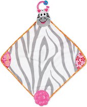 Играчка-чесалка под формата на одеяло с ъгли, направени от различни материали. Има халка за лесно закрепване на детска количка или детско легло. Може да се пере се в пералня. Размери на одеялото: 30 x 30 cm. ... |