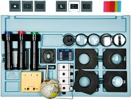 Комплектът е създаден, за да демонстрира на практика основните закони на отражението, пречупването и разпространението на светлината. Той е отличен инструмент за обучение по физика, който прави абстрактните понятия на оптиката лесни за разбиране чрез визуални и интерактивни експерименти. Комплектът съдържа всичко необходимо за провеждане на експерименти с лещи, призми и огледала, включително прецизно изработен екран с разграфени скали, дискове за закрепване на оптичните елементи, филтри, източник на светлина и набор от различни лещи и огледала. Учениците могат да наблюдават явления като отражение от плоско и сферично ... |